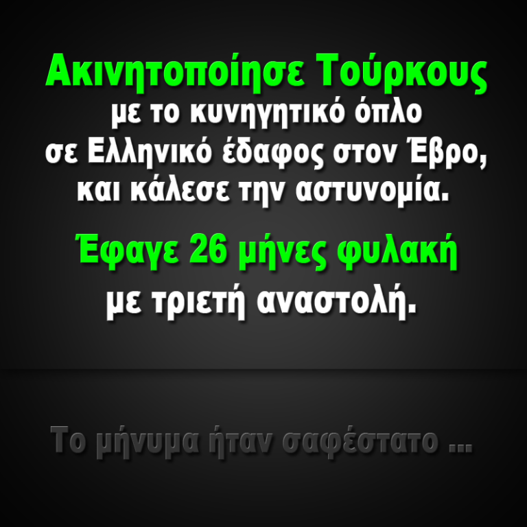 Ακινητοποιησε τους Τουρκους λαθρομεταναστες (?) και ειδοποιησε την Αστυνομια.